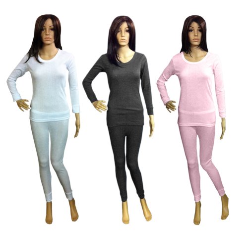 Ensemble de dessous thermolactiles roses pour femmes en Jacquard - T-Shirt à manches longues et collants longs, 10-12