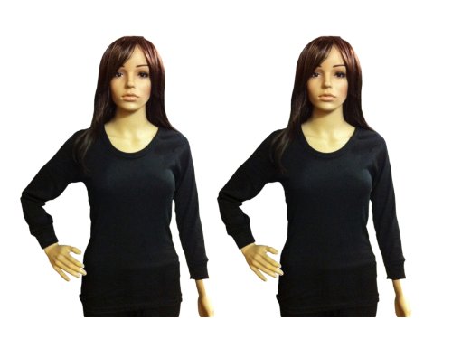 2 T-Shirts femmes noirs de dessous à manches longues thermolactiles en Jacquard Prix : EUR 12,99 Taille