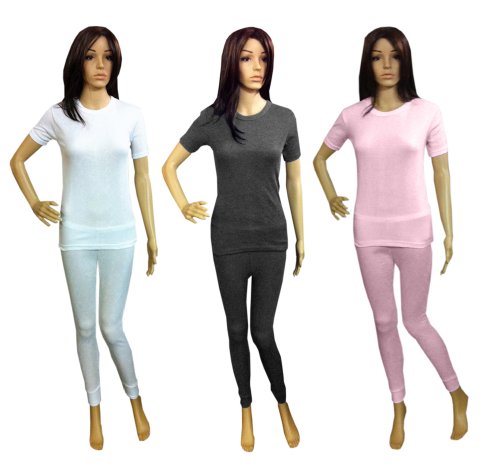 Ensemble de dessous thermolactiles pour femmes en Jacquard - T-Shirt à manches longues et collants longs, de couleurs et Manches Courtes Thermique T-shirt pour