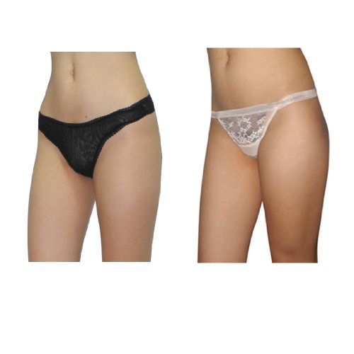 2 PACK: femmes Culottes Sexy G String extensible String / Slip femmes Extensible Culotte sexy de corde de G. (2) Couleur. Noir (1) Beige (1)