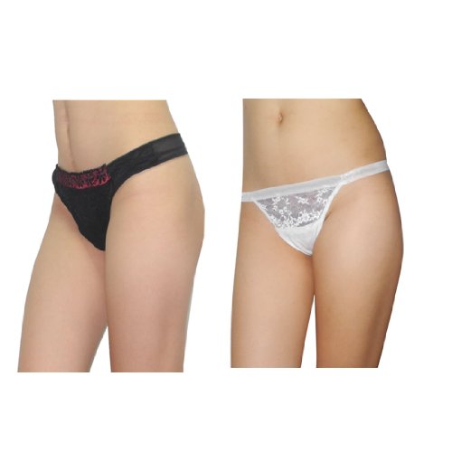 2 PACK: femmes Culottes Sexy G String extensible String / Slip femmes Extensible Culotte sexy de corde de G. (2) Couleur. Noir (1) Beige (1)